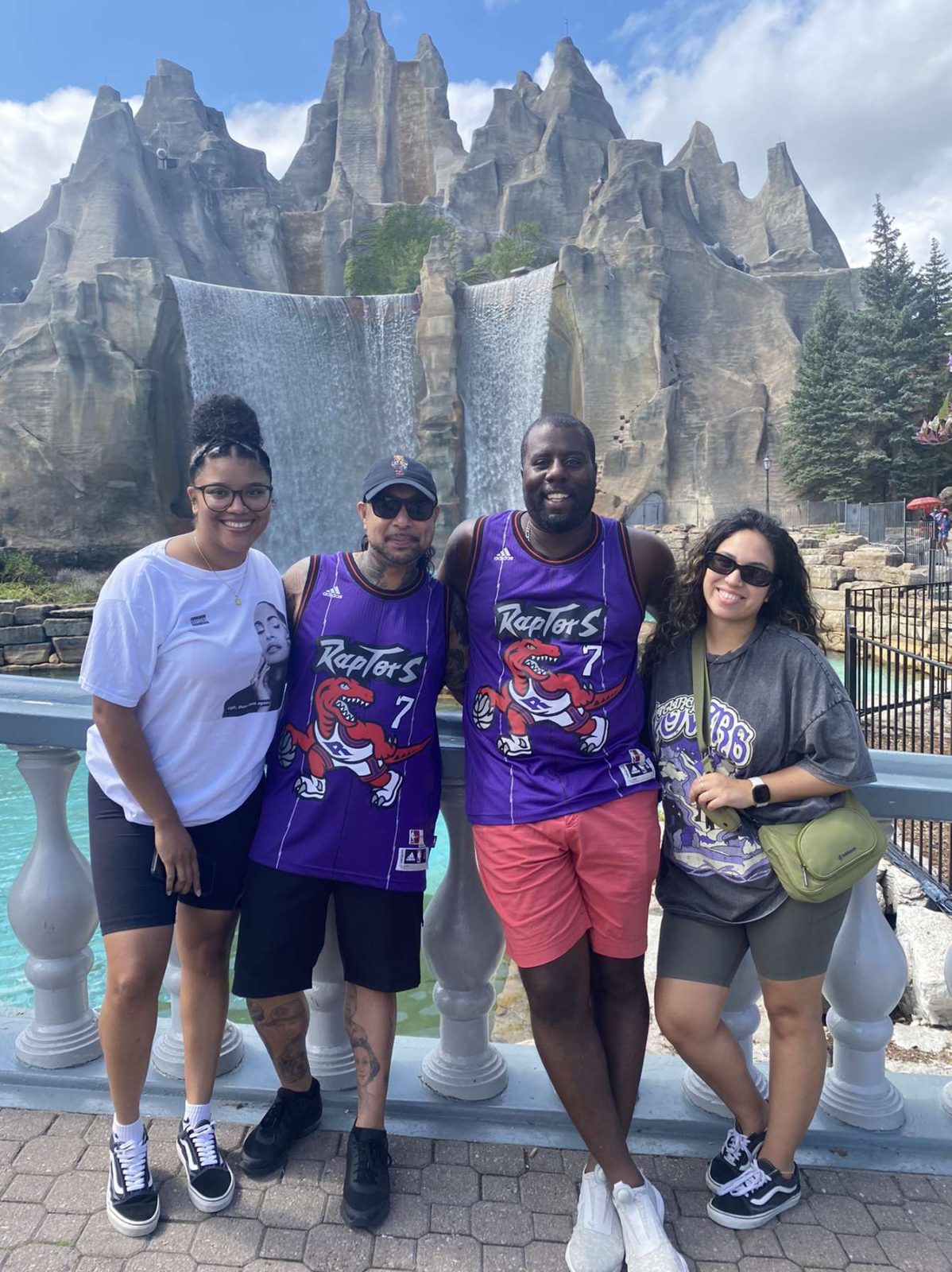 NYCE Facilitators Alia Hawthorne, Richard Laurente, and Meagan Hawthorne enjoying the heat with Orientation Manager, Lindel Merraro.