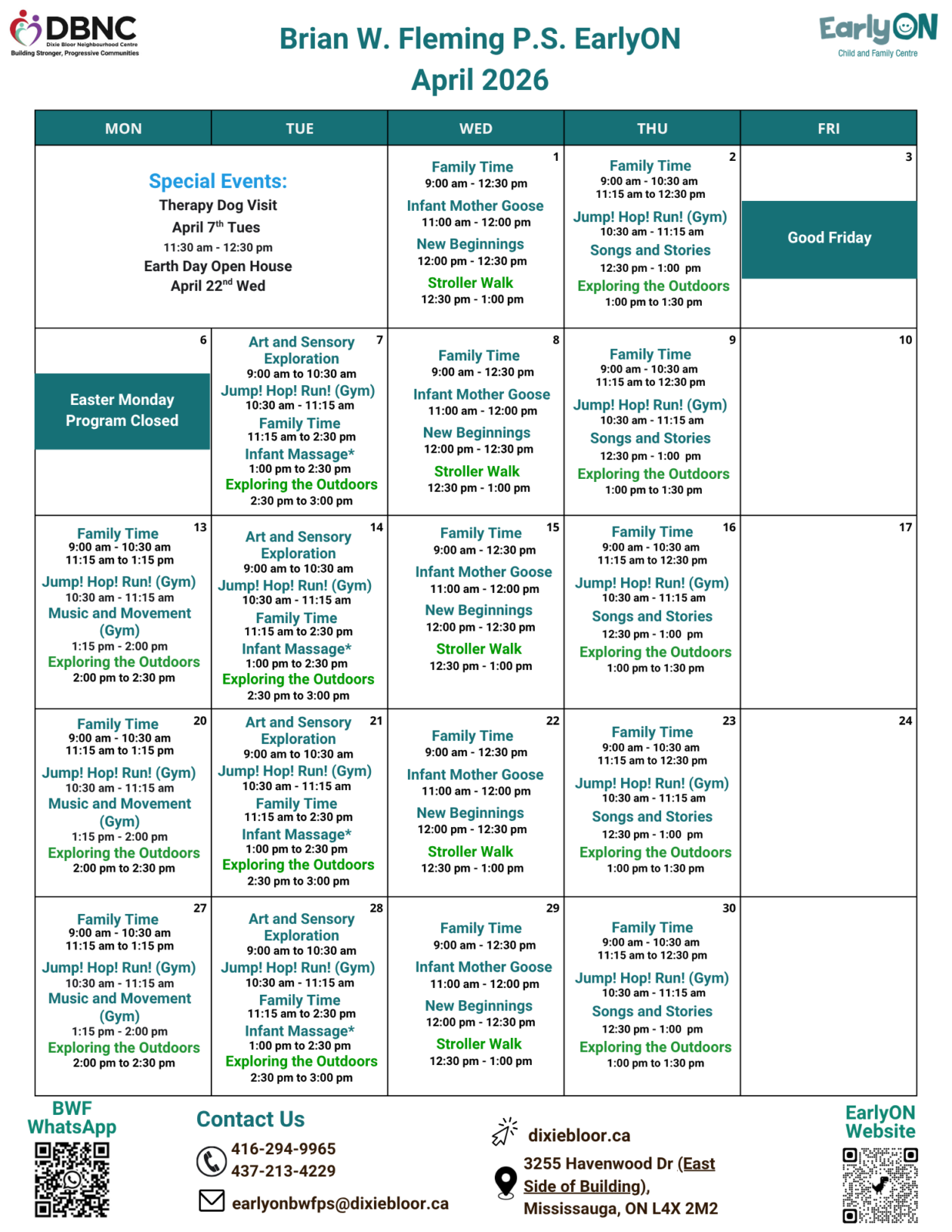 Brian W Fleming EarlyON Calendar