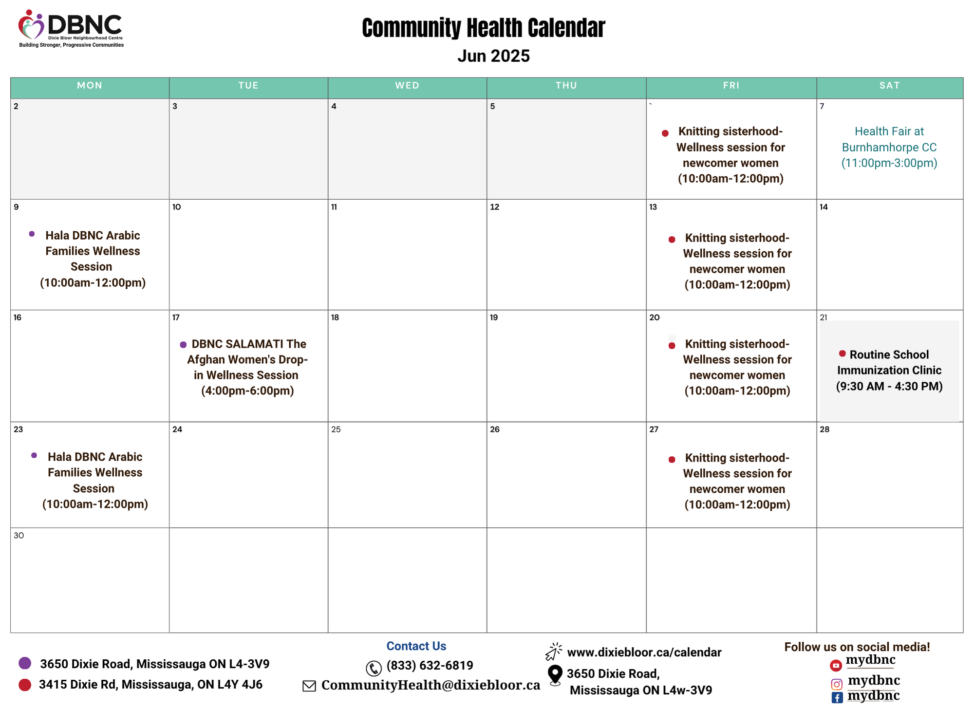 Community Health Calendar