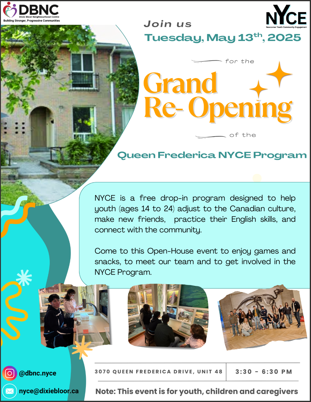 NYCE is a free drop-in program that provides a safe and welcoming environment to socialize and an opportunity for youth to develop important life skills.