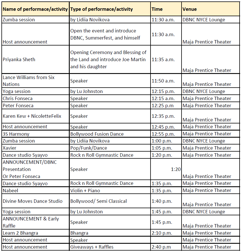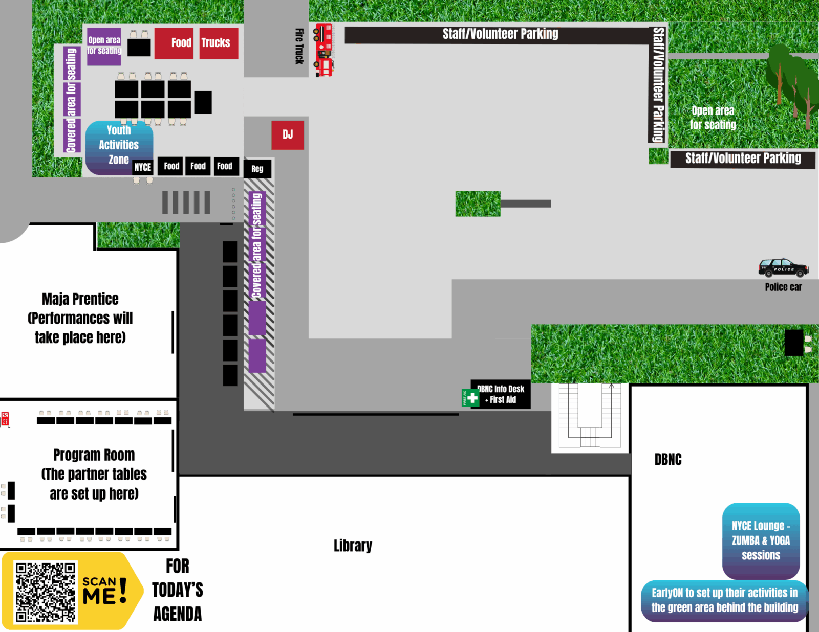 There are performances happening in the Maja Prentice theater, activities for children in the green space behind the building, Yoga and Zumba sessions in the DBNC NYCE Lounge, Youth activities in the parking lot, and much more….